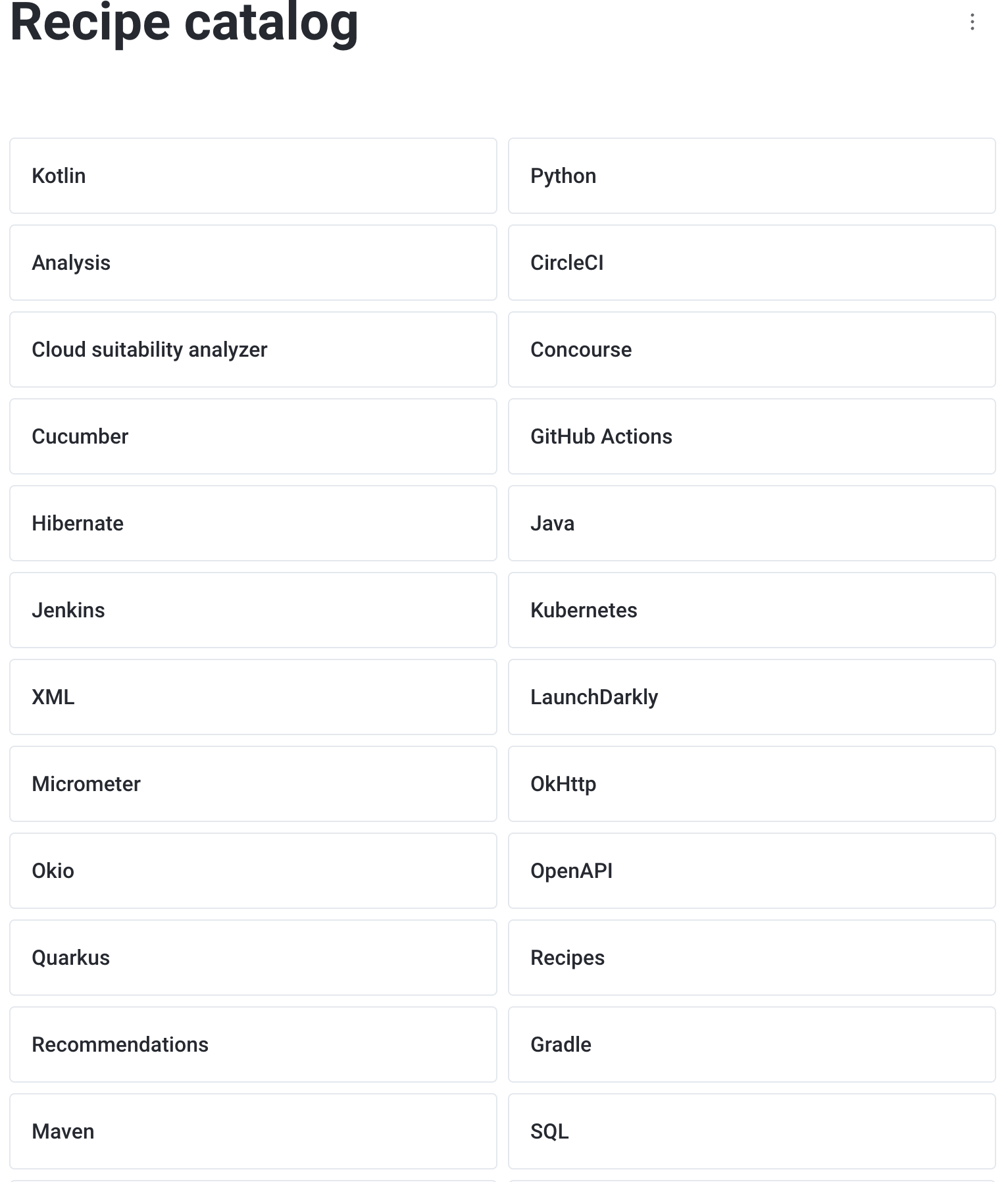 OpenRewrite 对不同类型分别内置了一些最佳实践,可通过 best practices 关键字搜索。